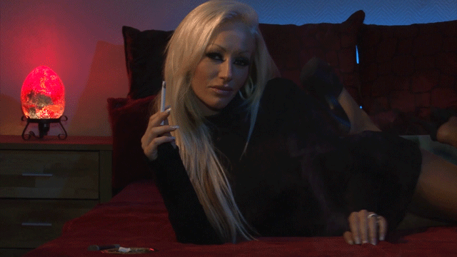 The beautiful July Diamond relaxes smoking on the bed.Her soft lips are caressing the cigarette, luxuriously she is taking a pull. She is blowing out the smoke of the cigarette very slowly, sometimes even into your face. You are allowed to watch July Diamond smoking in several perspectives. She is getting very close to the camera.