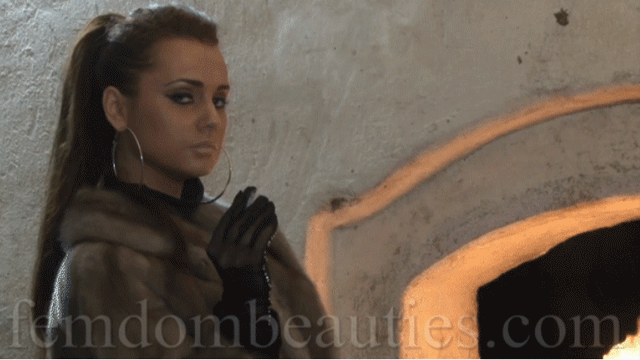 Lady Carla is lightening up a cigarette in the **** dungeon of the Femdombeauties. She is wearing a fur jacket, black satin gloves and black overknee boots. In her beauty and her dominance she is appearing similiar as the literary Venus in furs. Her mode to smoke is pure poetry. How seductively she is blowing out the smoke of the cigarette! But stop dreaming. You only exist for serving. The cigarette ashes which the sublime Lady Carla is tapping off her cigarette is landing on the floor. Later you will lick it off submissively and then you will be whiped like in the novel.